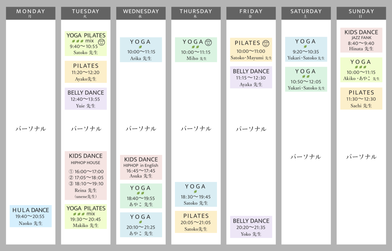 ニコちゃんマークがあるクラスは子連れで参加できます。