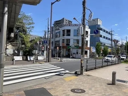 東川口駅の改札を出たら右へ進み、モスバーガーの方へ横断歩道を渡ります。