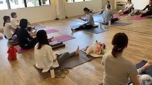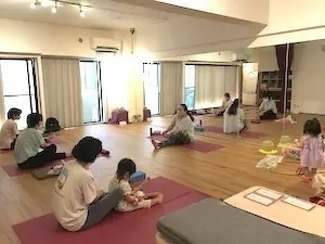 産後や未就学児がいらっしゃったり、お子様の夏休み中など、レッスンに同伴していただけるクラスを設けています。レッスンスケジュールの「ニコちゃんマーク」のあるクラスは同伴可能です。